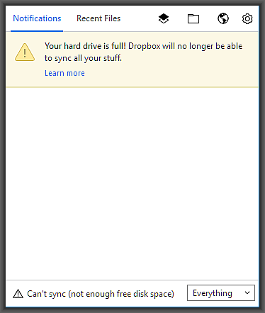 Now, these are both really good features. However after a while, if you are syncing your camera uploads and screenshots to your computer, which I do, they can take up a lot of space on your computer and you will eventually get a Hard drive full error and Dropbox will no longer sync.